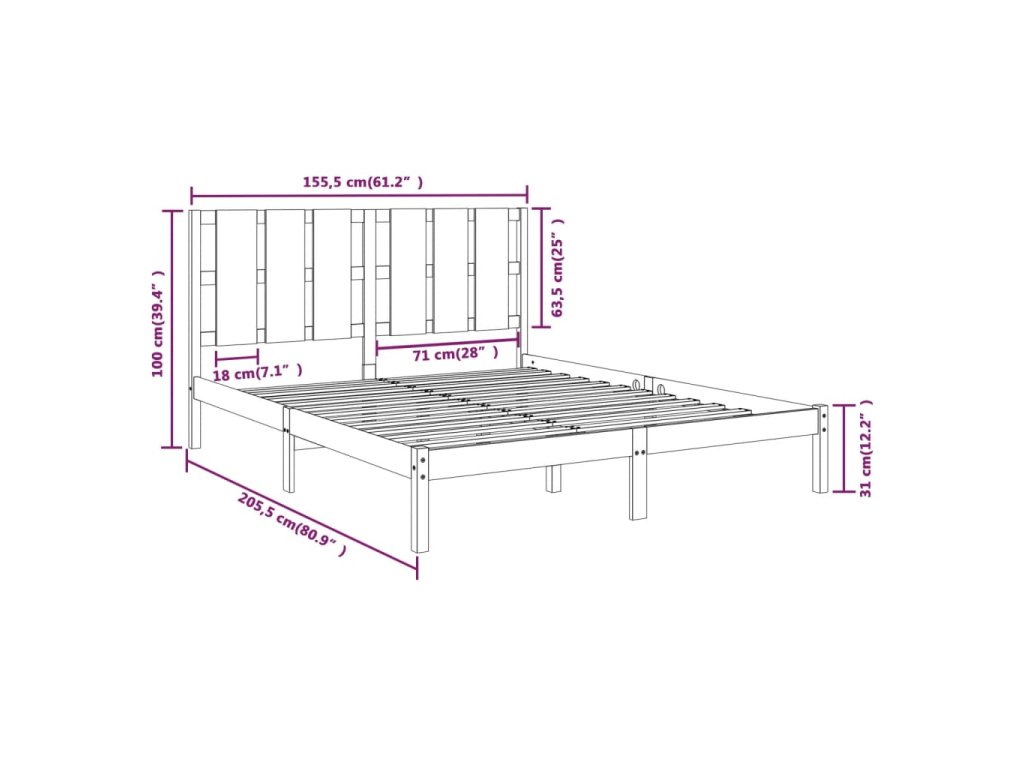 Rám postele bílý masivní dřevo 150 x 200 cm King Size 3105606