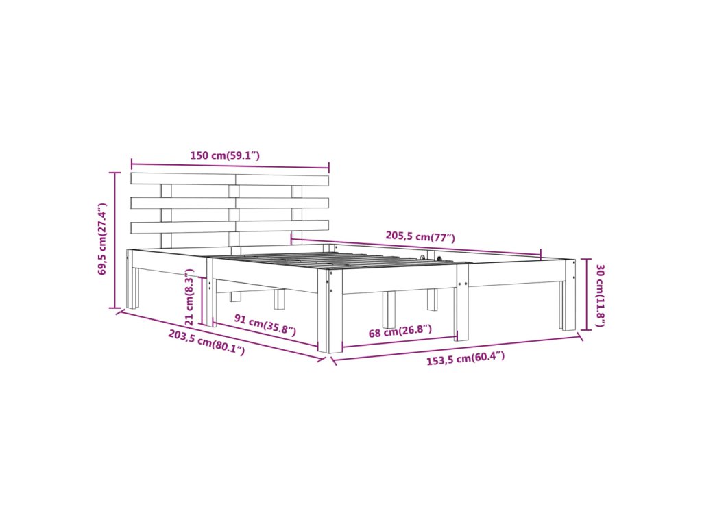 - Tento rám postele je vhodný pro matrace o rozměrech 150 x 200 cm (5FT King Size).