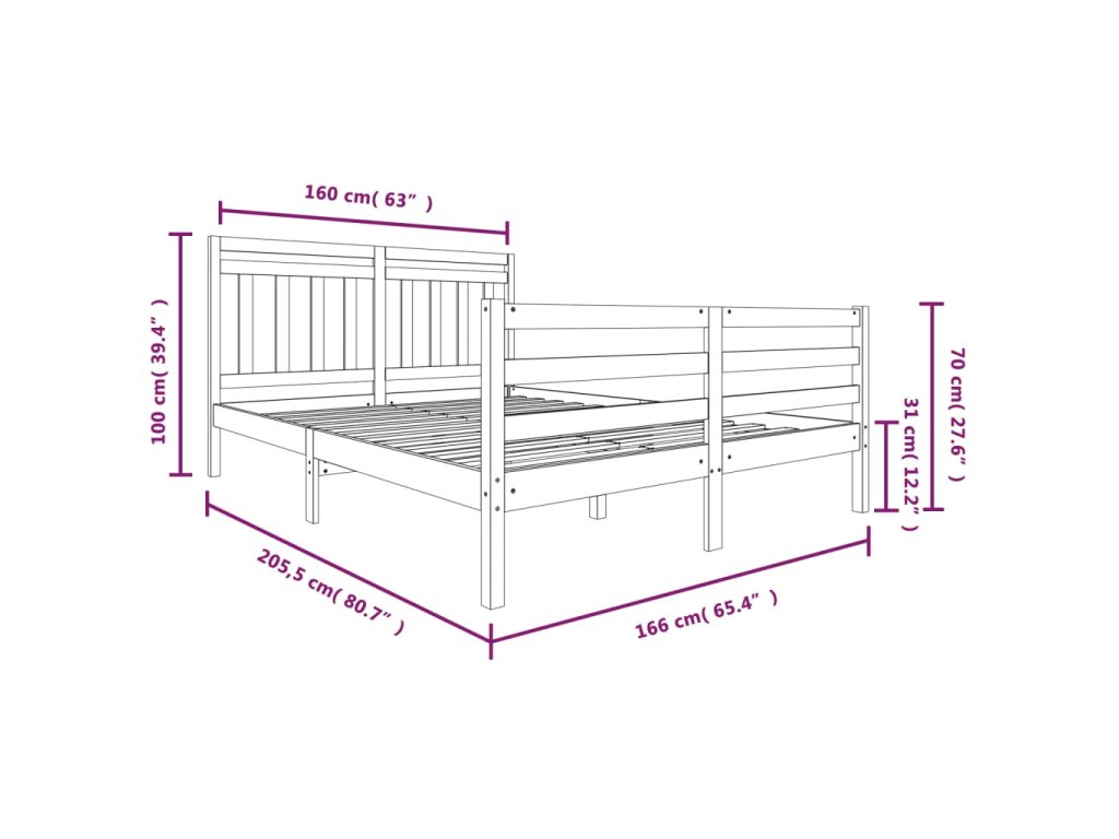 - Celkové rozměry rámu postele: 205,5 x 166 x 100 cm (D x Š x V)