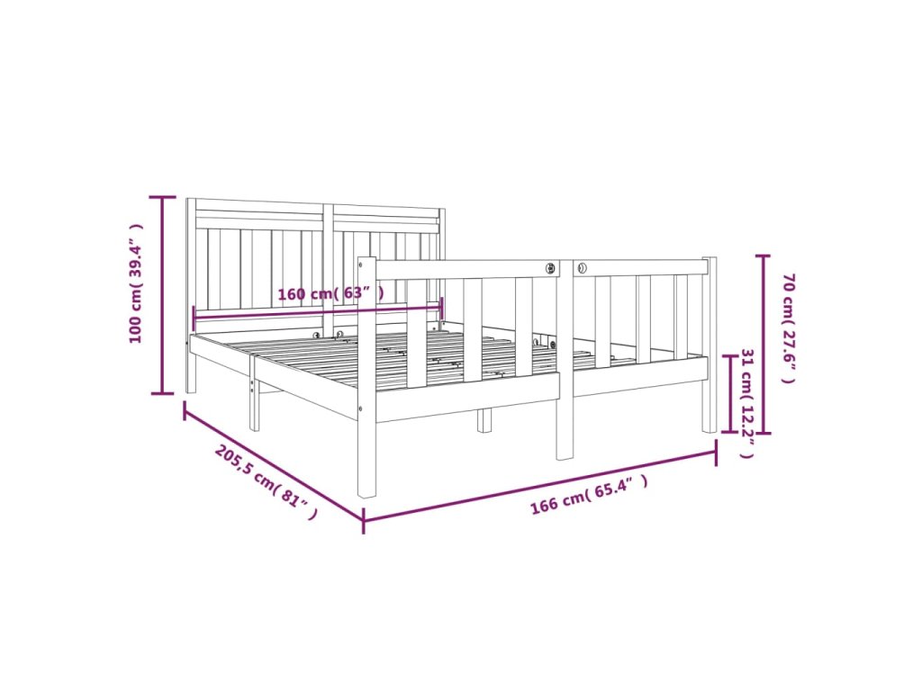 - Celkové rozměry rámu postele: 205,5 x 166 x 100 cm (D x Š x V)