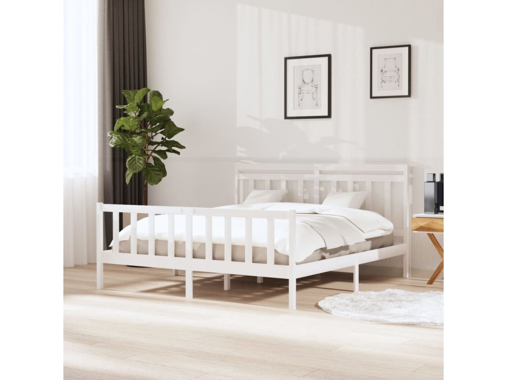 Rám postele bílý masivní dřevo 160 x 200 cm 3100969