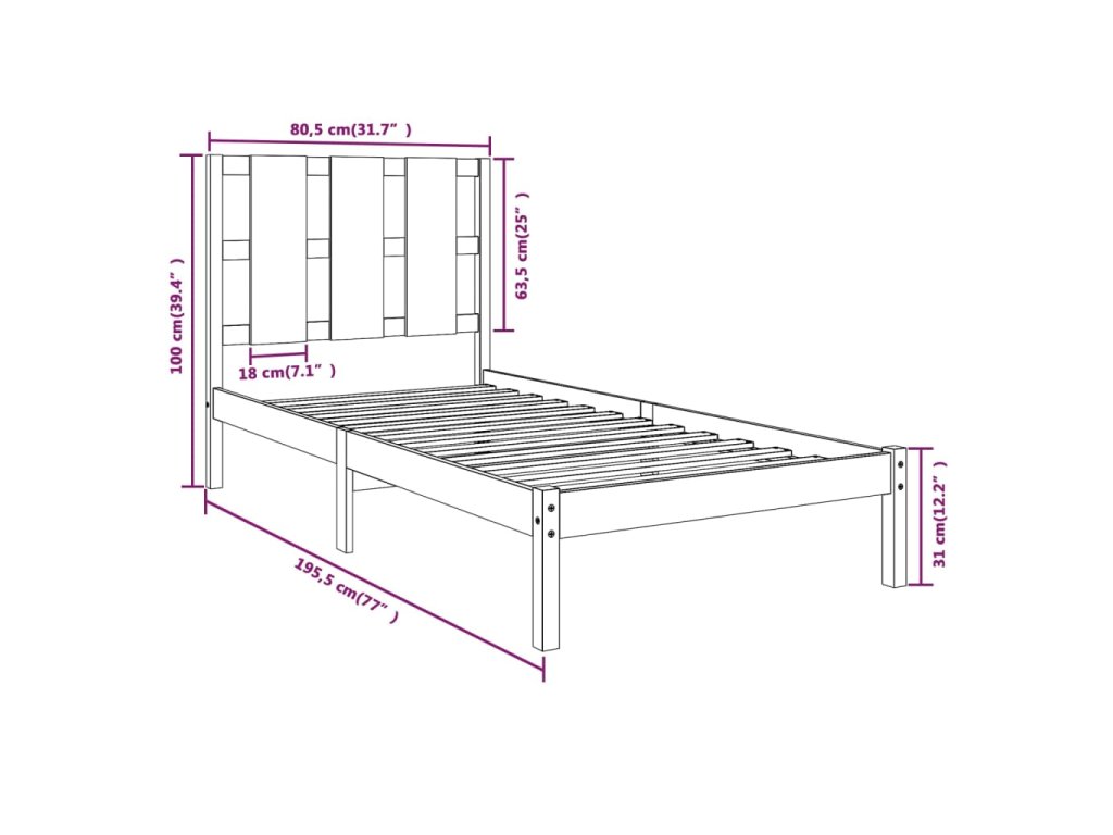Rám postele bílý masivní dřevo 75 x 190 cm malé jednolůžko 3105561