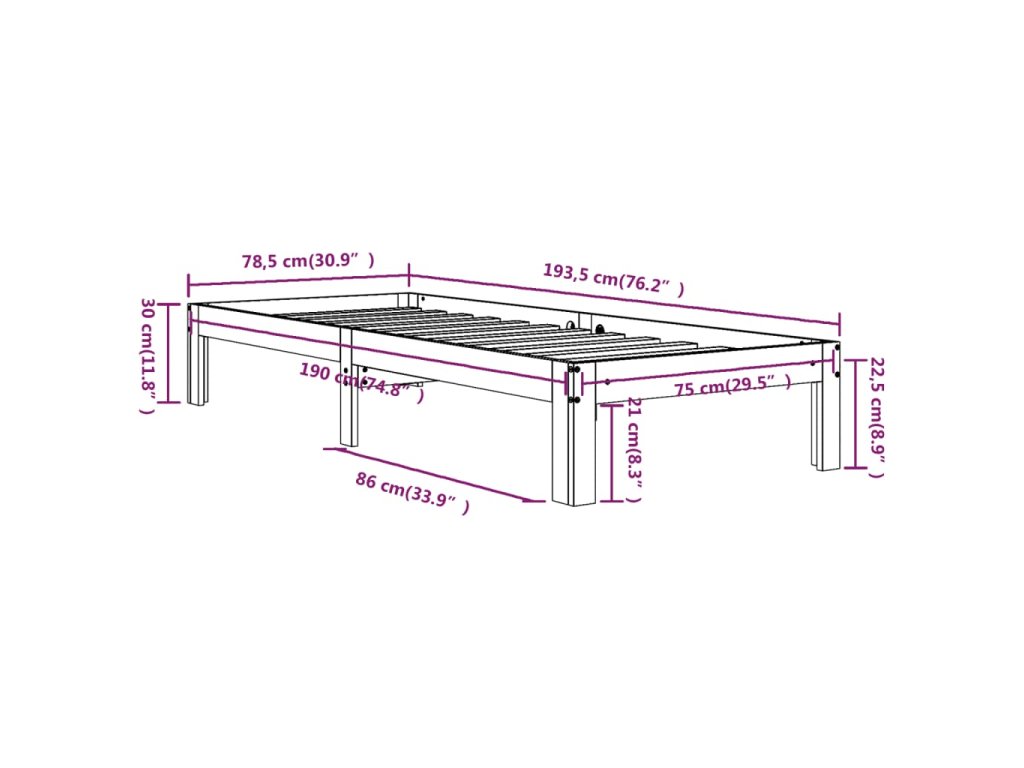 - Tento rám postele je vhodný pro matrace o rozměrech 75 x 190 cm (2FT6 Small Single)