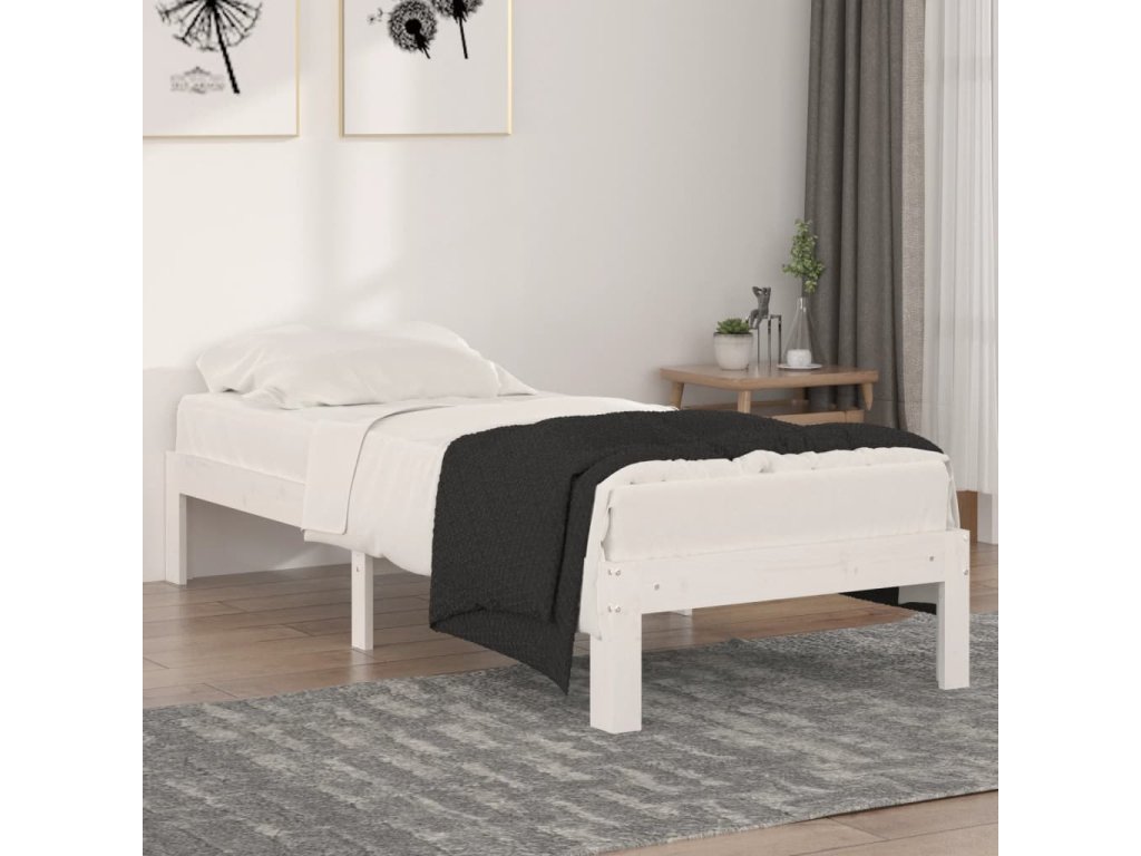 Rám postele bílý masivní dřevo 75 x 190 cm malé jednolůžko 810326