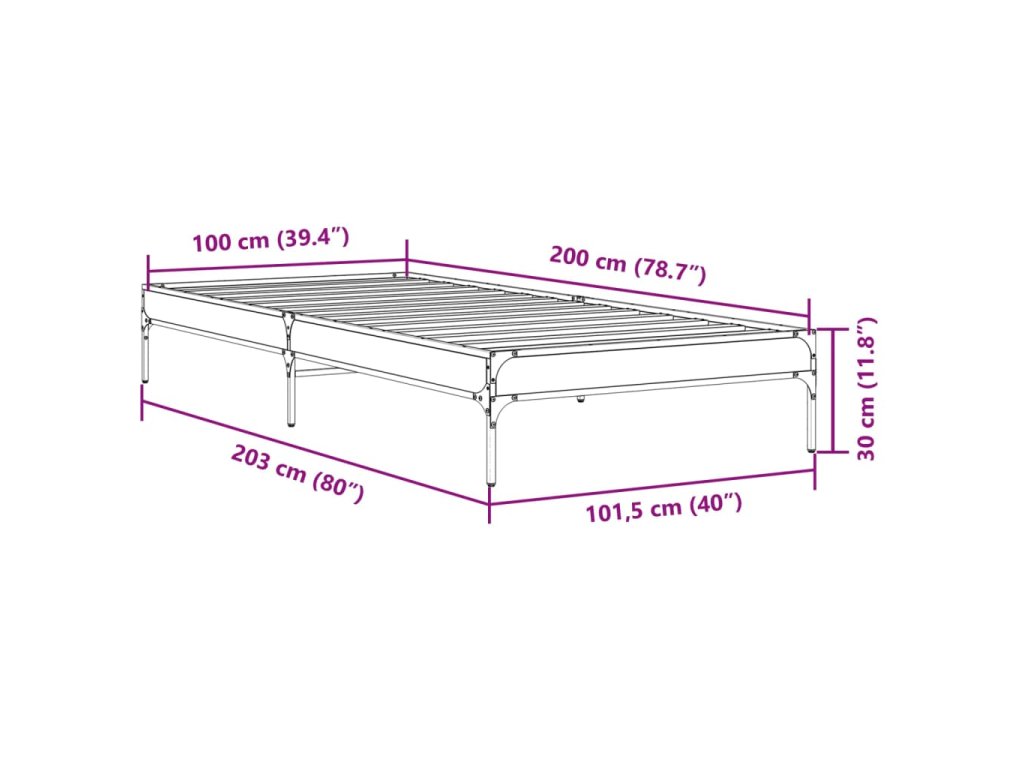 Rám postele černý 100 x 200 cm kompozitní dřevo a kov 845026