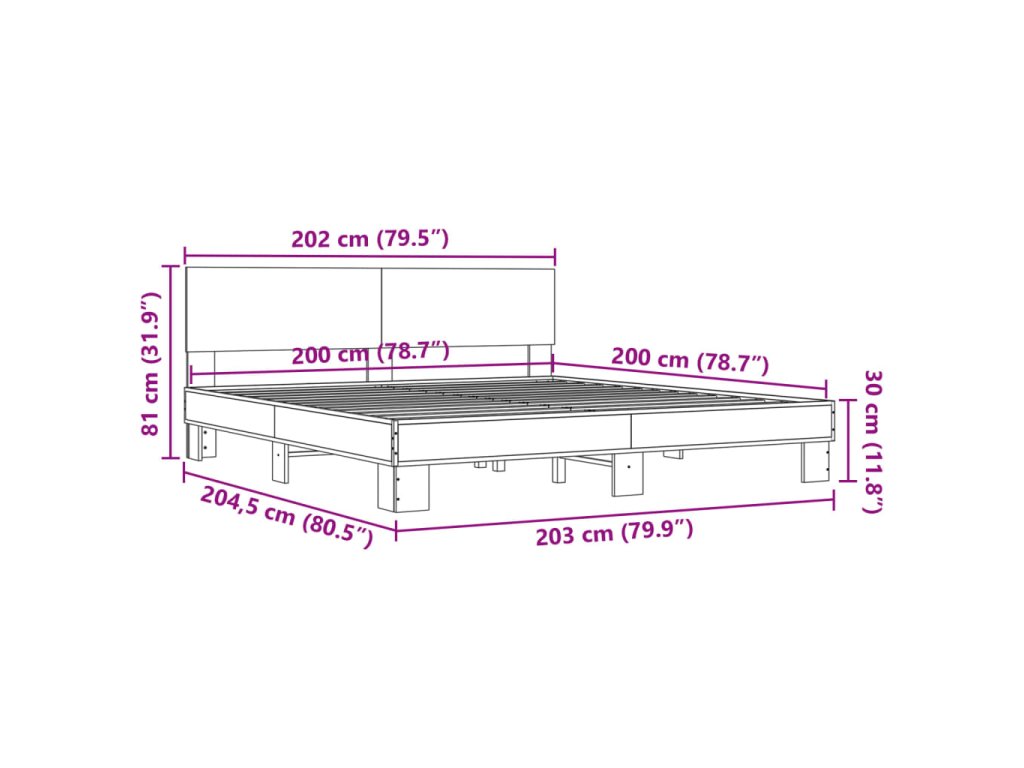 Rám postele černý 200 x 200 cm kompozitní dřevo a kov 3280172