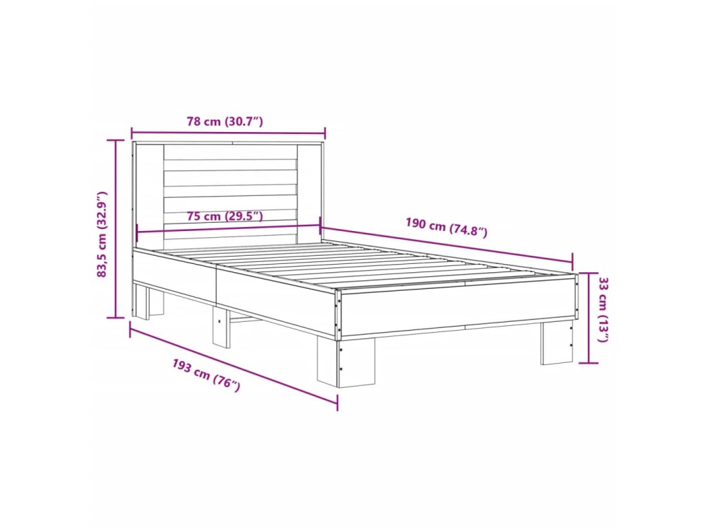 Rám postele černý 75 x 190 cm kompozitní dřevo a kov 845657