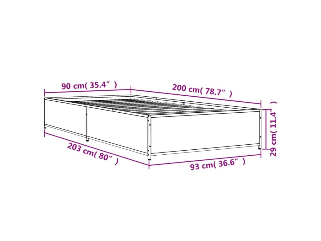 Rám postele černý 90 x 200 cm kompozitní dřevo a kov 845111