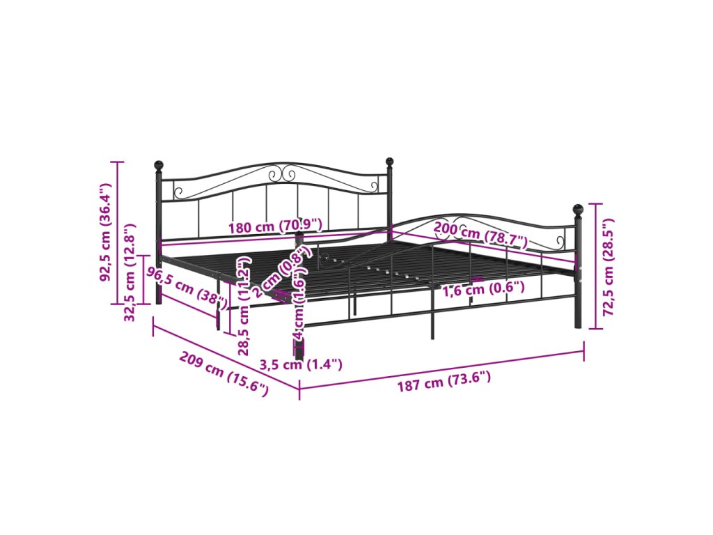 Rám postele černý kov 180 x 200 cm 325003