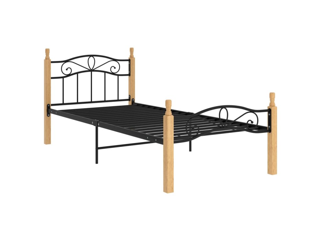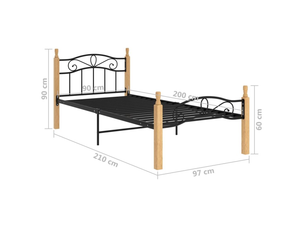 Rám postele černý kov a masivní dubové dřevo 90 x 200 cm 324911