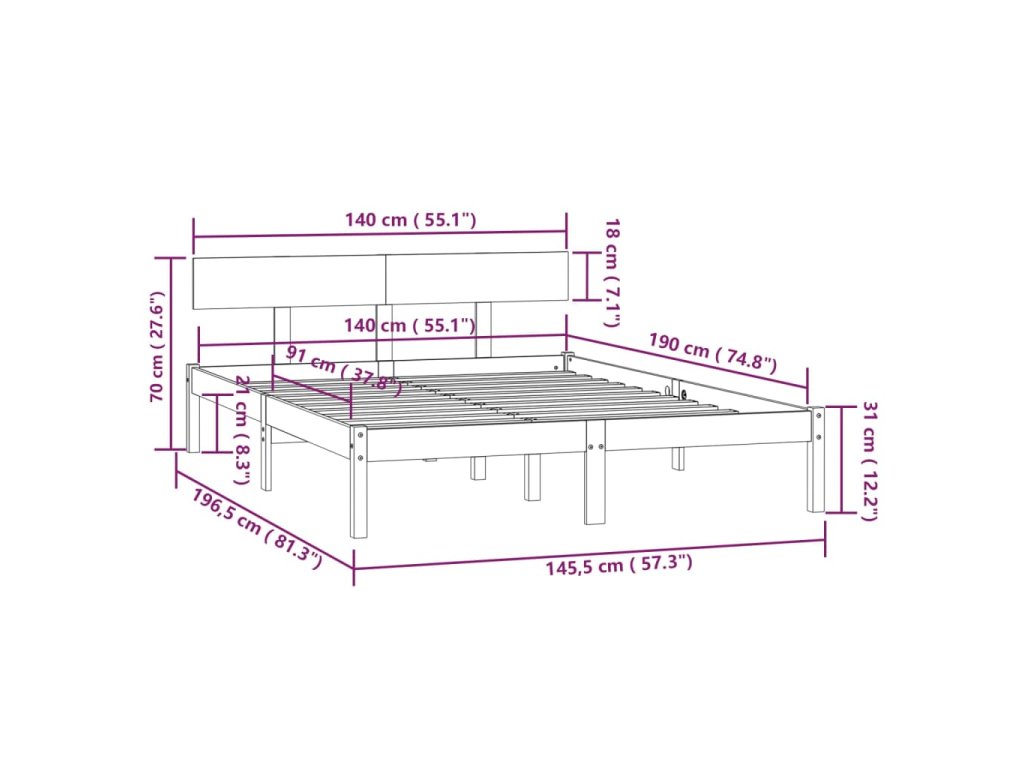 Rám postele je vyrobený z masivního borového dřeva, je tedy mimořádně odolný a má dlouhou životnost. Pevné lamely nabízí potřebnou oporu a klasické čelo vám umožní užívat si při čtení nebo sledování filmu pohodlí a ničím nerušený odpočinek. Na toto dvoulůžko se hodí matrace o rozměrech 140 x 190 cm. Dopřejte si na této posteli kvalitní spánek každou noc!