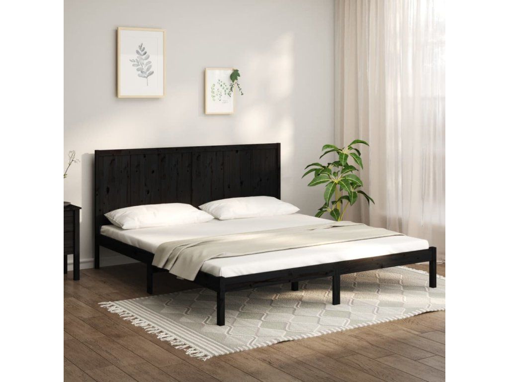 Rám postele černý masivní borovice 200 x 200 cm 3105754