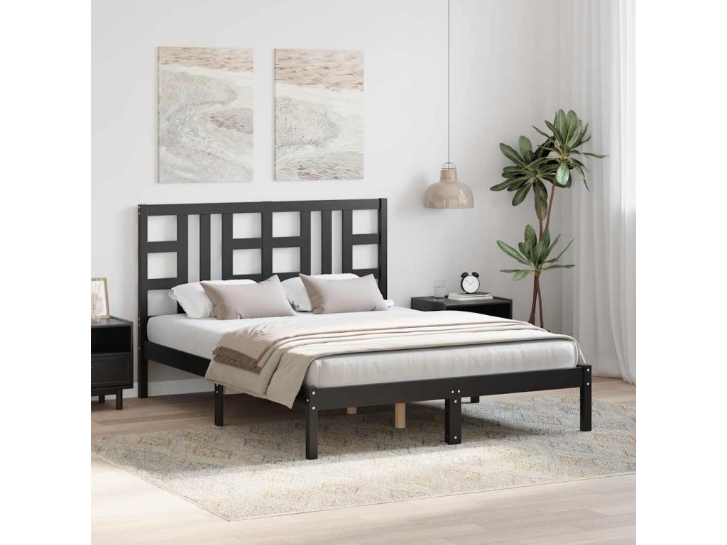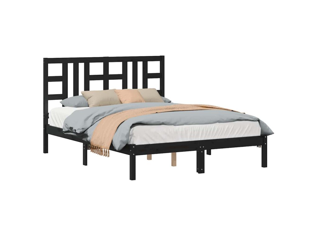 Rám postele černý masivní dřevo 140 x 190 cm 3105389