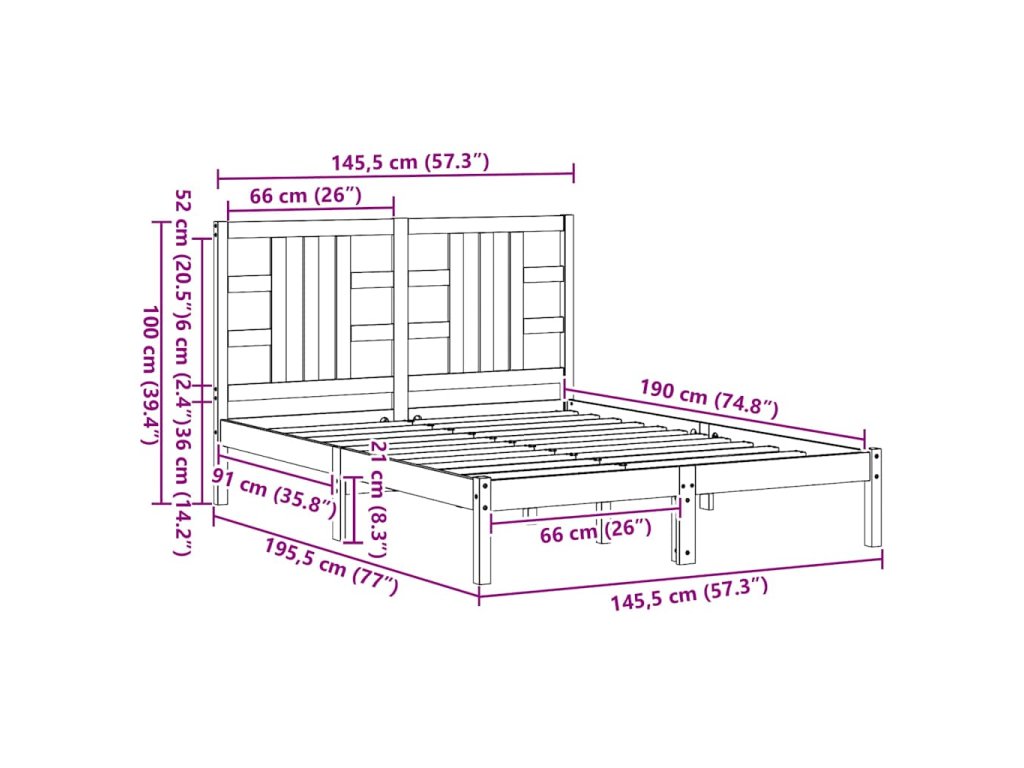 - Rozměry rámu postele: 195,5 x 145,5 x 31 cm (D x Š x V)