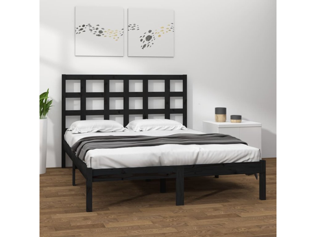 Rám postele černý masivní dřevo 200 x 200 cm 3105494