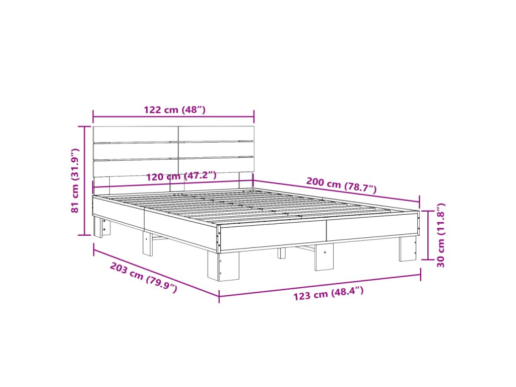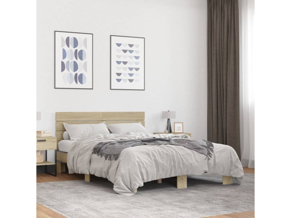 Rám postele dub sonoma 120 x 200 cm kompozitní dřevo a kov 3280153