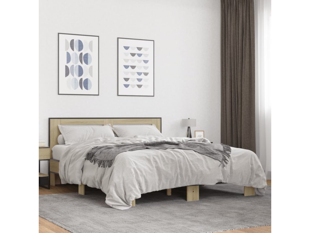 Rám postele dub sonoma 150 x 200 cm kompozitní dřevo a kov 3280098