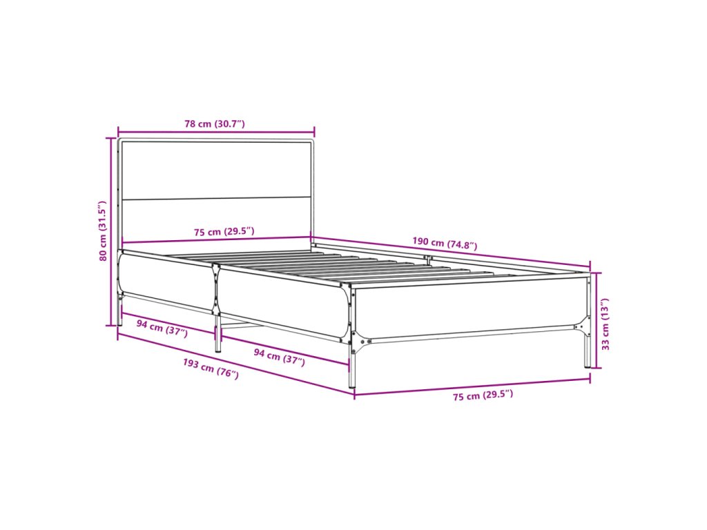 Rám postele dub sonoma 75 x 190 cm kompozitní dřevo a kov 845558