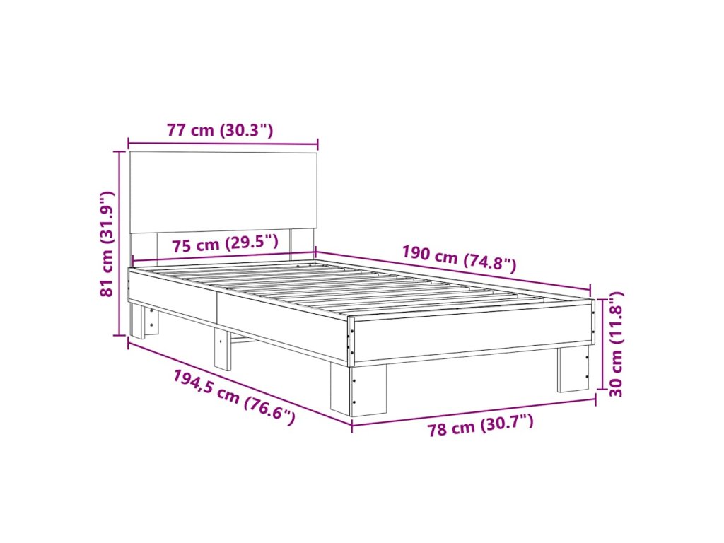 Rám postele dub sonoma 75 x 190 cm kompozitní dřevo a kov 845813