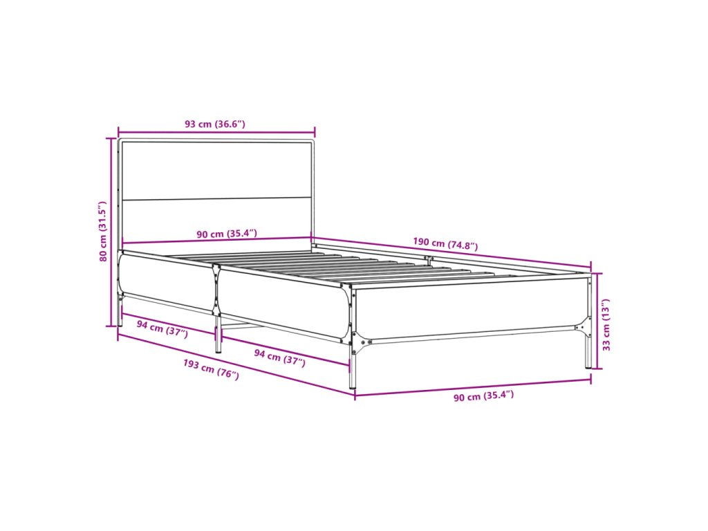 Rám postele dub sonoma 90 x 190 cm kompozitní dřevo a kov 845563