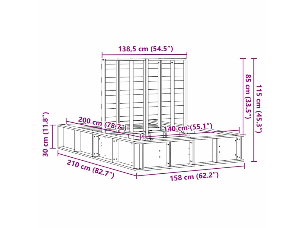 - Celkové rozměry: 210 x 158 x 30 cm (D x Š x V)