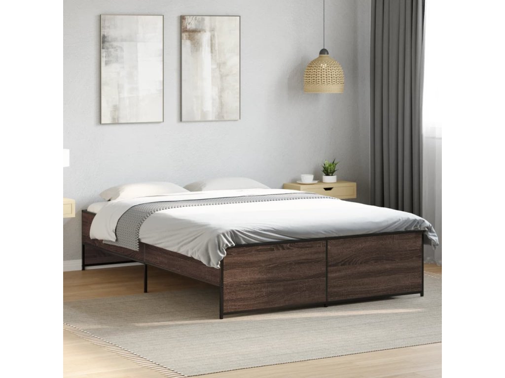 Rám postele hnědý dub 120 x 190 cm kompozitní dřevo a kov 3279911