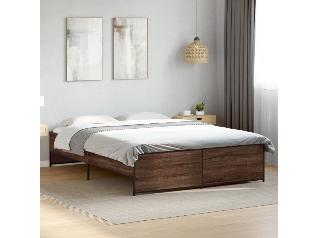 Rám postele hnědý dub 140 x 200 cm kompozitní dřevo a kov 3279891