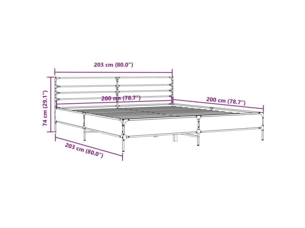 Rám postele hnědý dub 200 x 200 cm kompozitní dřevo a kov 3280066