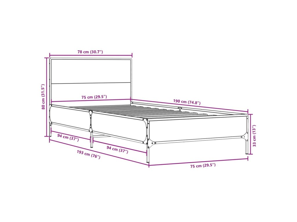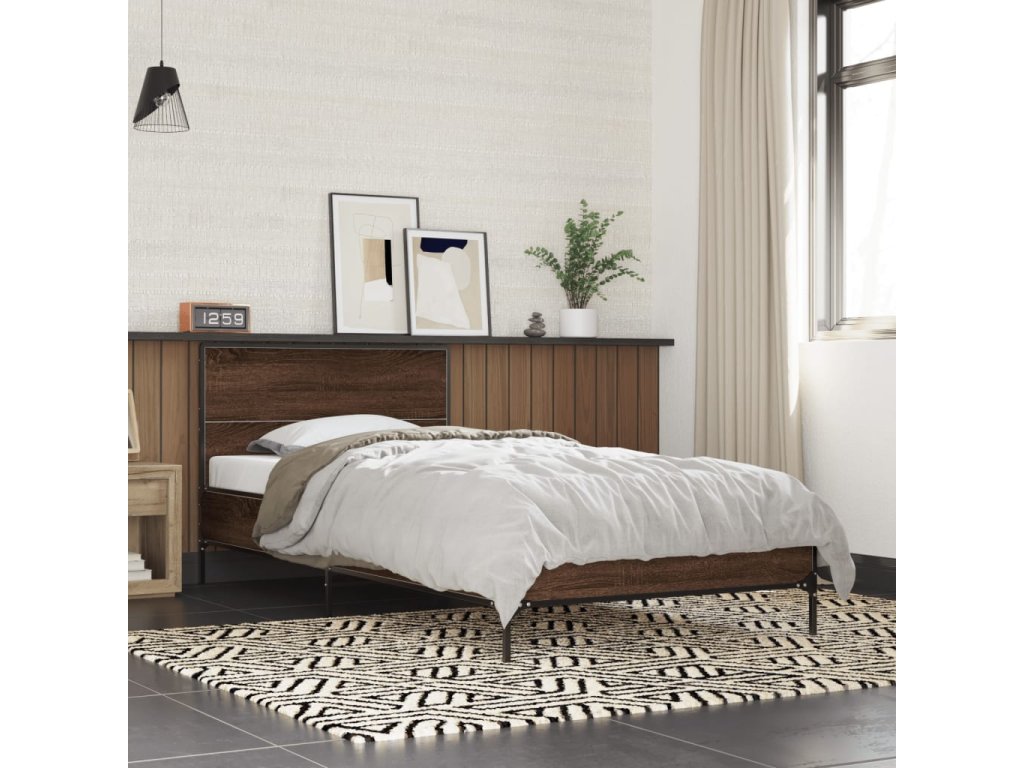 Rám postele hnědý dub 75 x 190 cm kompozitní dřevo a kov 845561