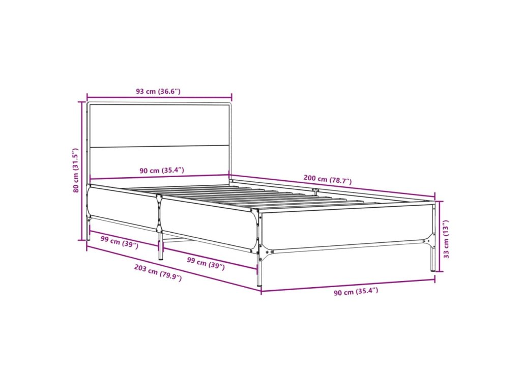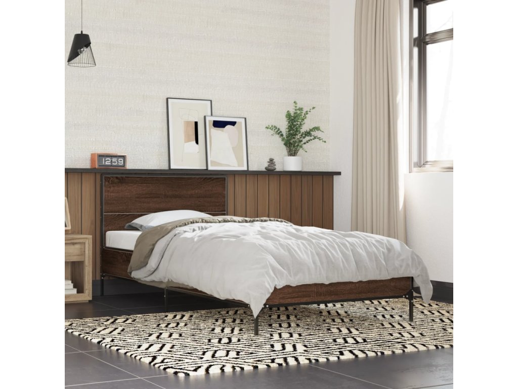 Rám postele hnědý dub 90 x 200 cm kompozitní dřevo a kov 845521