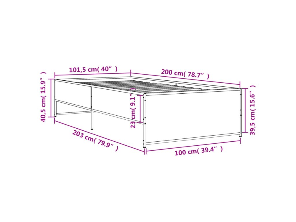 Rám postele kouřový dub 100 x 200 cm kompozitní dřevo a kov 845238