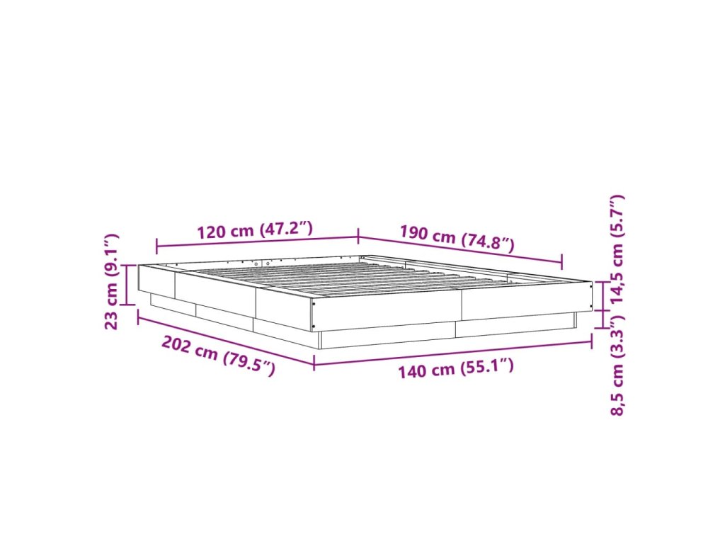 Rám postele kouřový dub 120 x 190 cm kompozitní dřevo 3281235
