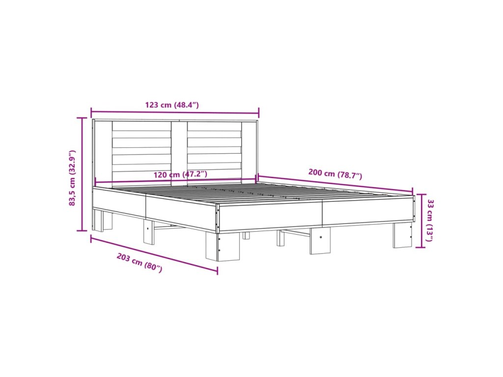 Rám postele kouřový dub 120 x 200 cm kompozitní dřevo a kov 3280109