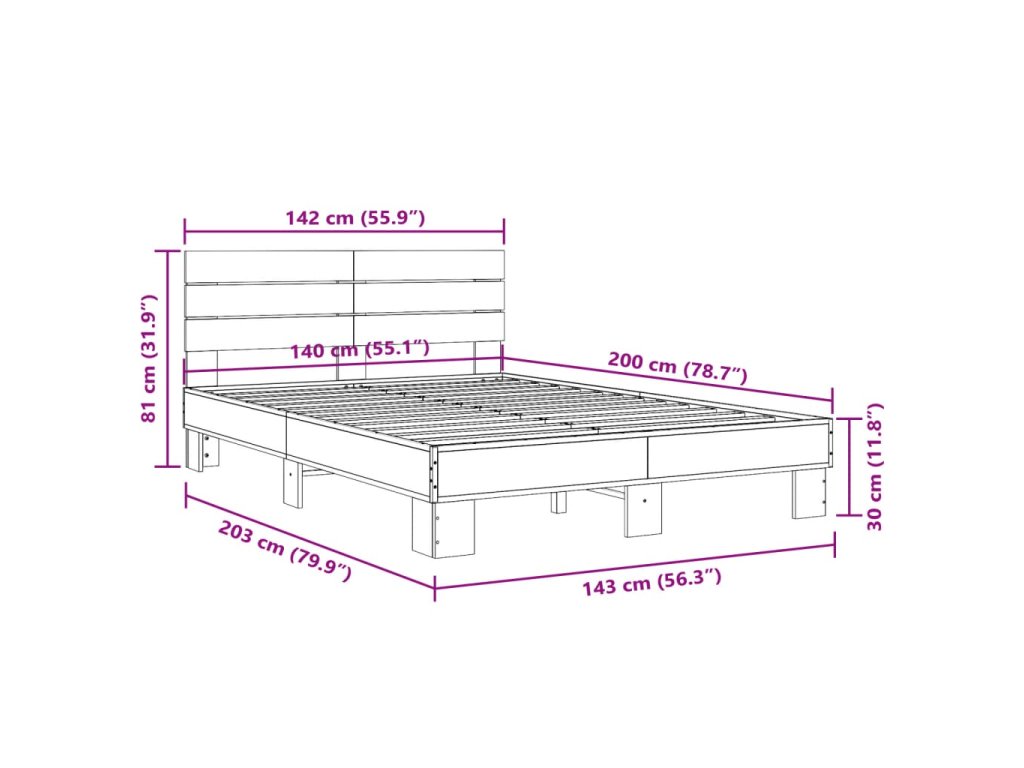 Rám postele kouřový dub 140 x 200 cm kompozitní dřevo a kov 3280149