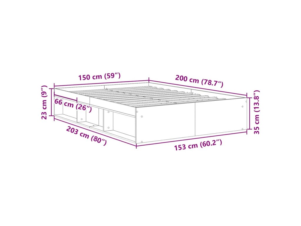 Rám postele kouřový dub 150 x 200 cm King Size 3203870