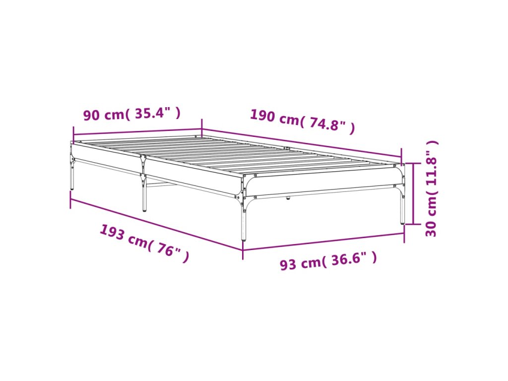 Rám postele kouřový dub 90 x 190 cm kompozitní dřevo a kov 845053