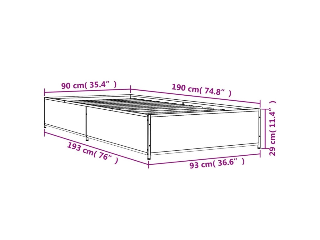 Rám postele kouřový dub 90 x 190 cm kompozitní dřevo a kov 845118