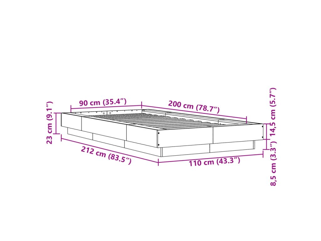 Rám postele kouřový dub 90 x 200 cm kompozitní dřevo 3281214