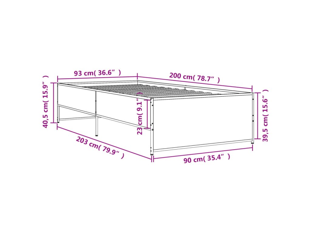 Rám postele kouřový dub 90 x 200 cm kompozitní dřevo a kov 845243