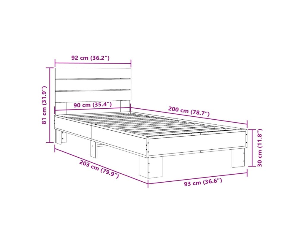 Rám postele kouřový dub 90 x 200 cm kompozitní dřevo a kov 845744