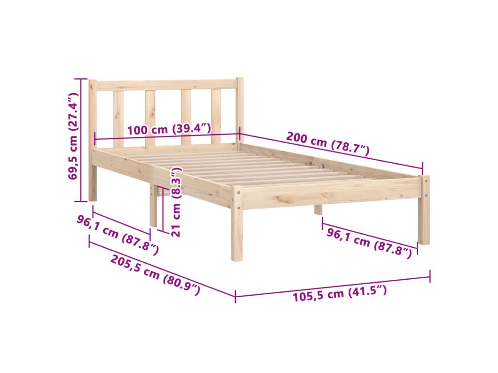 Rám postele je vyrobený z masivního borového dřeva, takže je mimořádně pevný a vyniká svou dlouhou životností. Postelový rám je vhodný pro matraci o rozměrech 100 x 200 cm. Na této posteli si můžete každou noc dopřát kvalitní spánek!