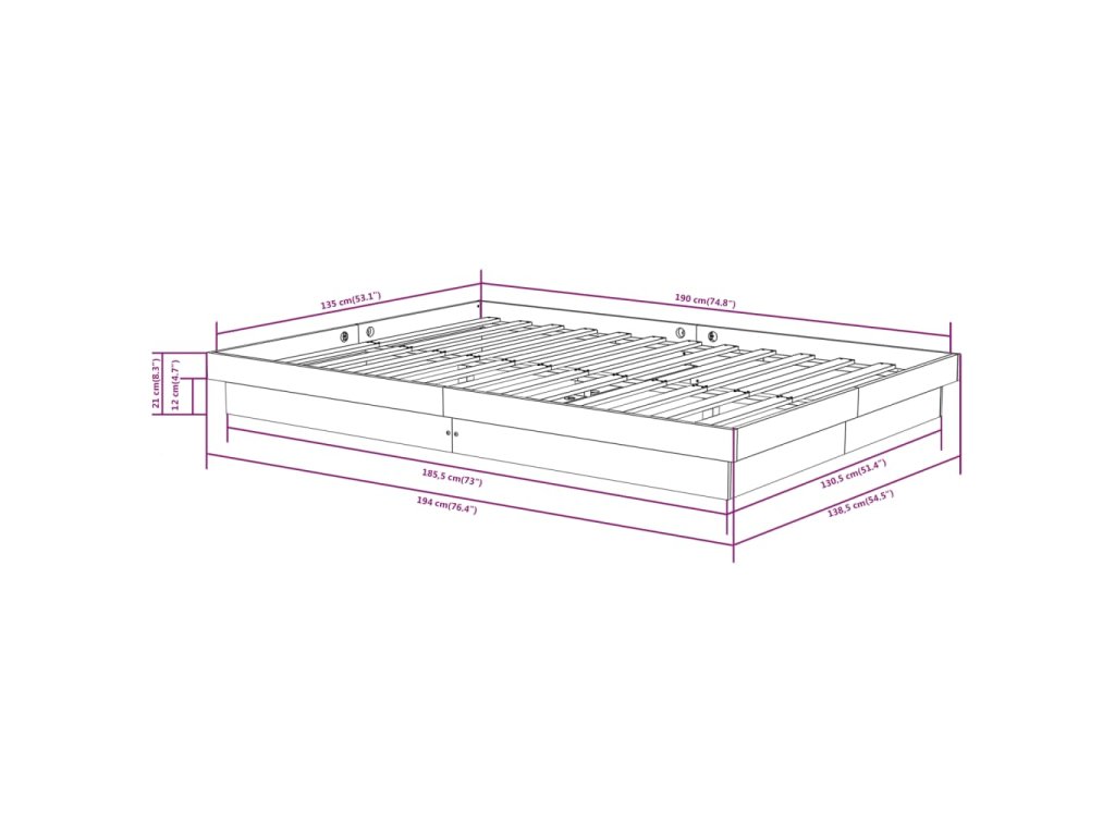 - Tento rám postele je vhodný pro matrace o rozměrech 135 x 190 cm (4FT6 Double).