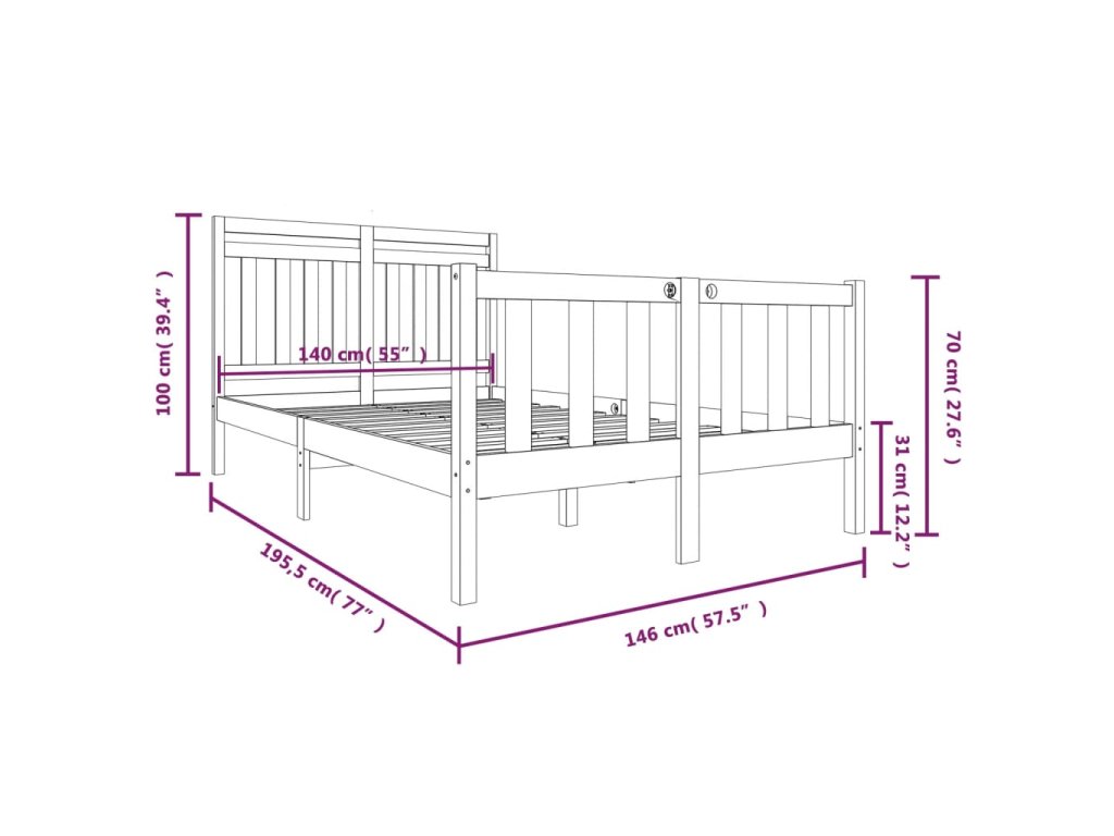 - Celkové rozměry rámu postele: 195,5 x 146 x 100 cm (D x Š x V)