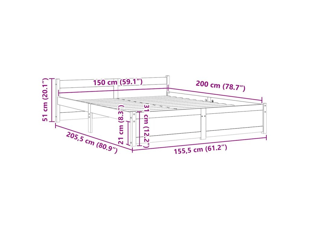 Rám postele masivní dřevo 150 x 200 cm King Size 815049