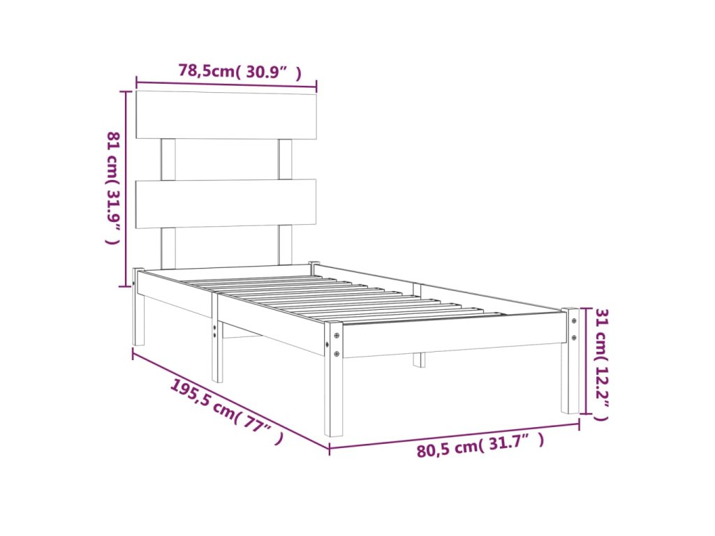 - Rozměry rámu postele: 195,5 x 80,5 x 31 cm (D x Š x V)