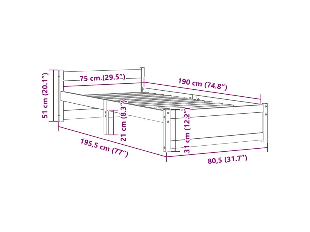 - Tento rám postele je vhodný pro matrace o rozměrech 75 x 190 cm (2FT6 Small Single)