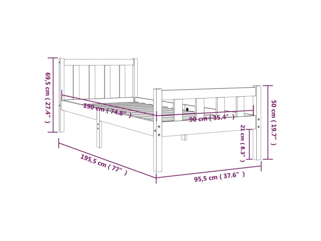 - Rozměry rámu postele: 195,5 x 95,5 x 69,5 cm (D x Š x V)