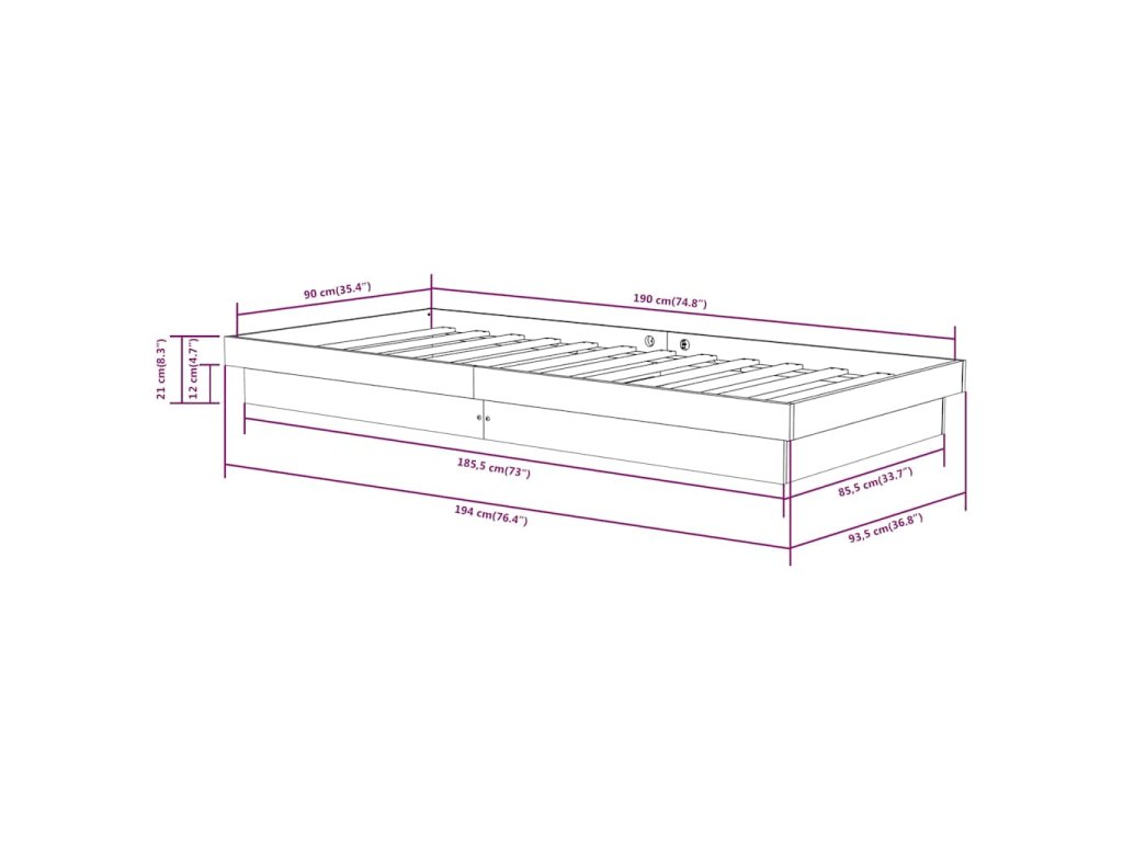 - Tento rám postele je vhodný pro matrace o rozměrech 90 x 190 cm (3FT Single).