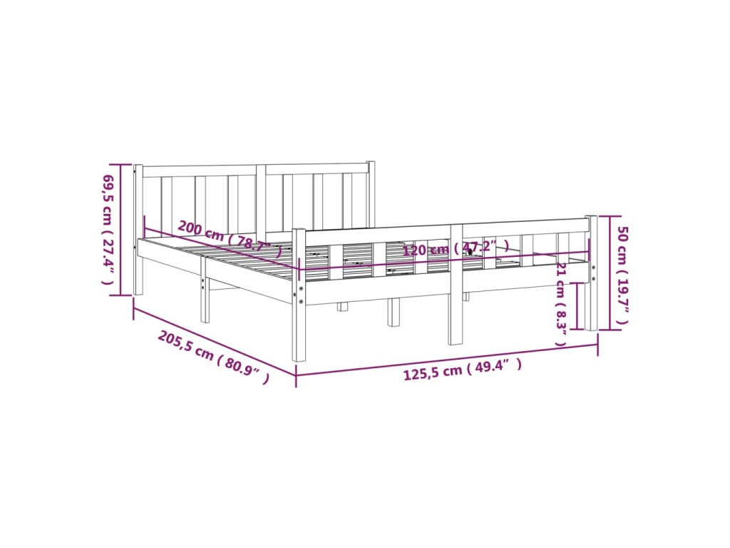 - Rozměry rámu postele: 205,5 x 125,5 x 69,5 cm (D x Š x V)
