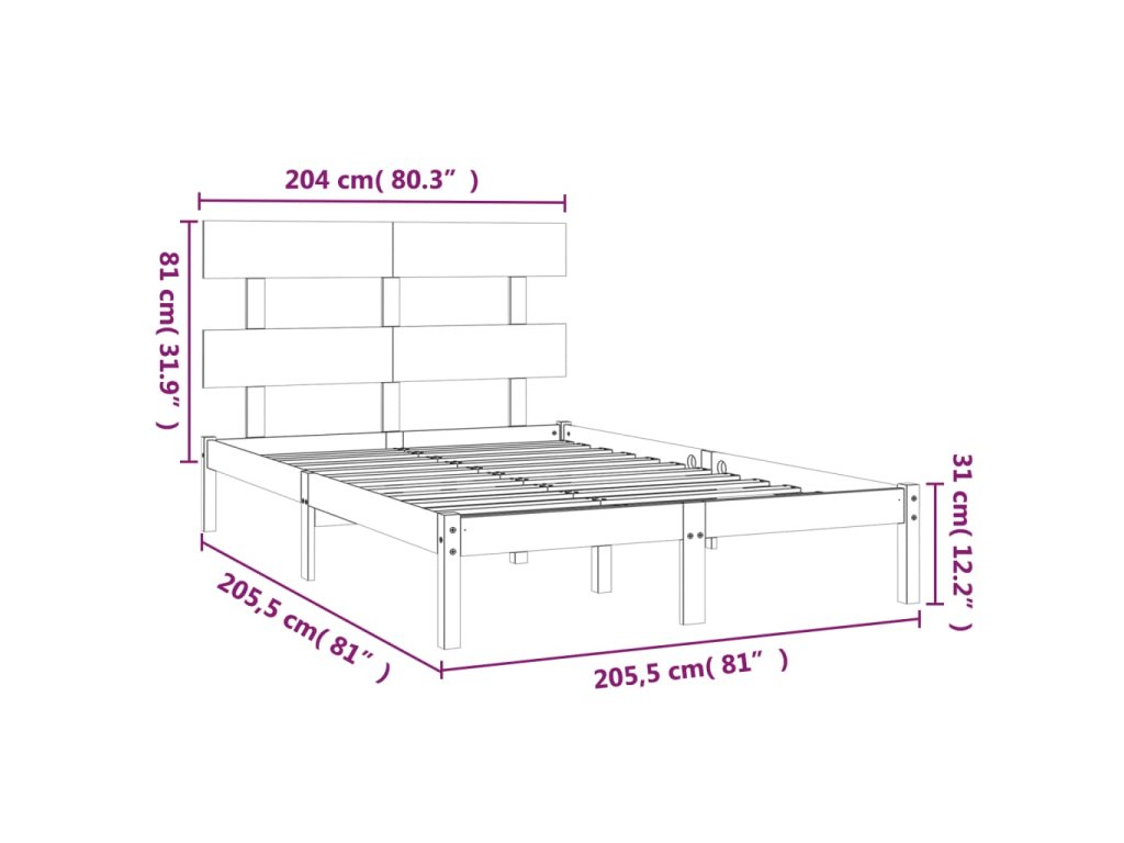 - Rozměry rámu postele: 205,5 x 205,5 x 31 cm (D x Š x V)